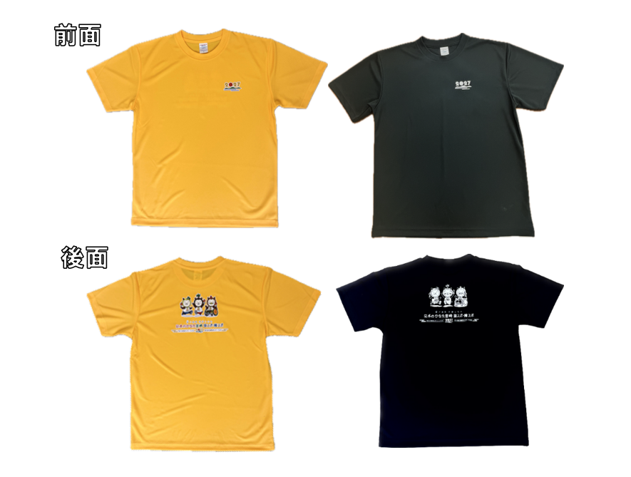 大会マスコットキャラクター「みやざき犬」がプリントされたオリジナルTシャツです。吸水速乾性の高いドライ素材を使用しているので、汗をかいても快適な着心地が持続します。