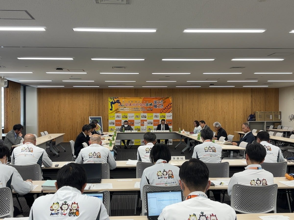 「第81回国民スポーツ大会 本大会実施要項総則(案)」「日本のひなた宮崎 国スポ 競技会役員編成基準(案)」「日本のひなた宮崎 国スポ 競技会会期変更(案)」「日本のひなた宮崎 国スポ 競技別リハーサル大会の追加(案)」について審議され、議案については原案のとおり承認されました。