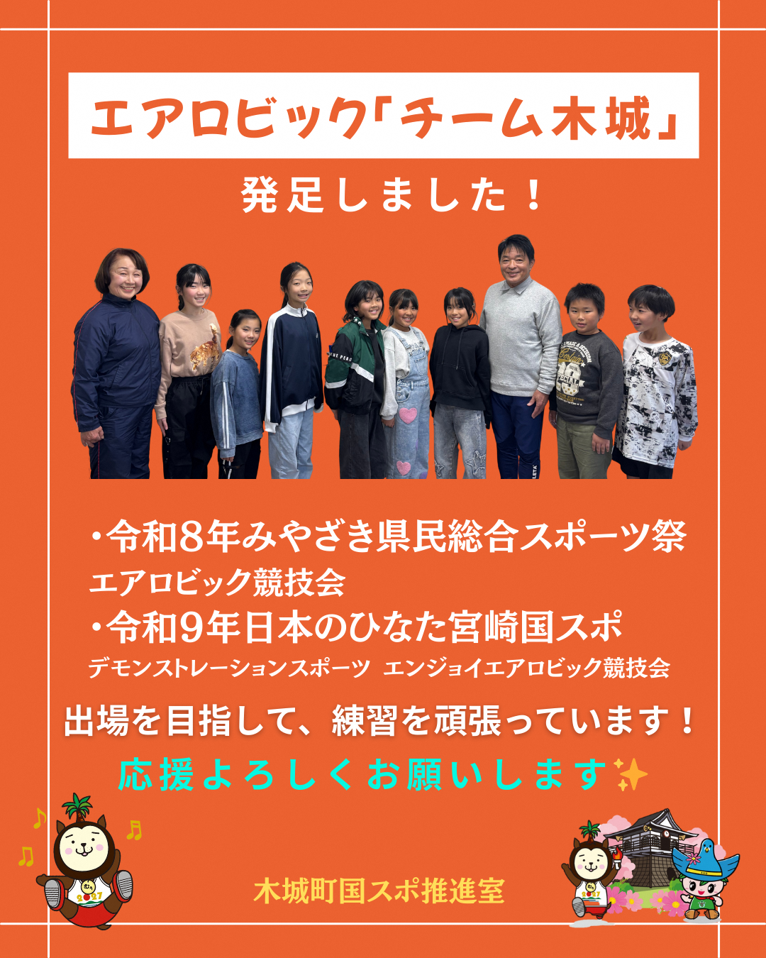 【木城町からのお知らせ】エアロビック「チーム木城」発足!